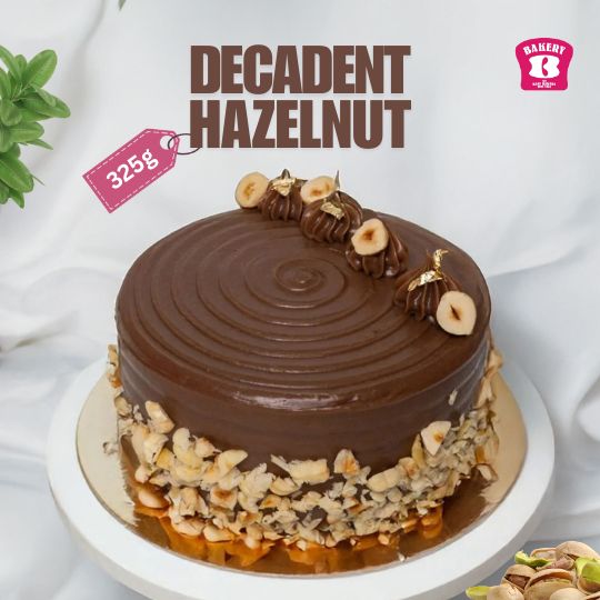 Decadent Hazelnut 325g Cake is where chocolate luxury meets nutty perfection. Coated in silky smooth chocolate ganache and crowned with swirls of hazelnut cream, this cake is a celebration of bold flavour and refined texture.