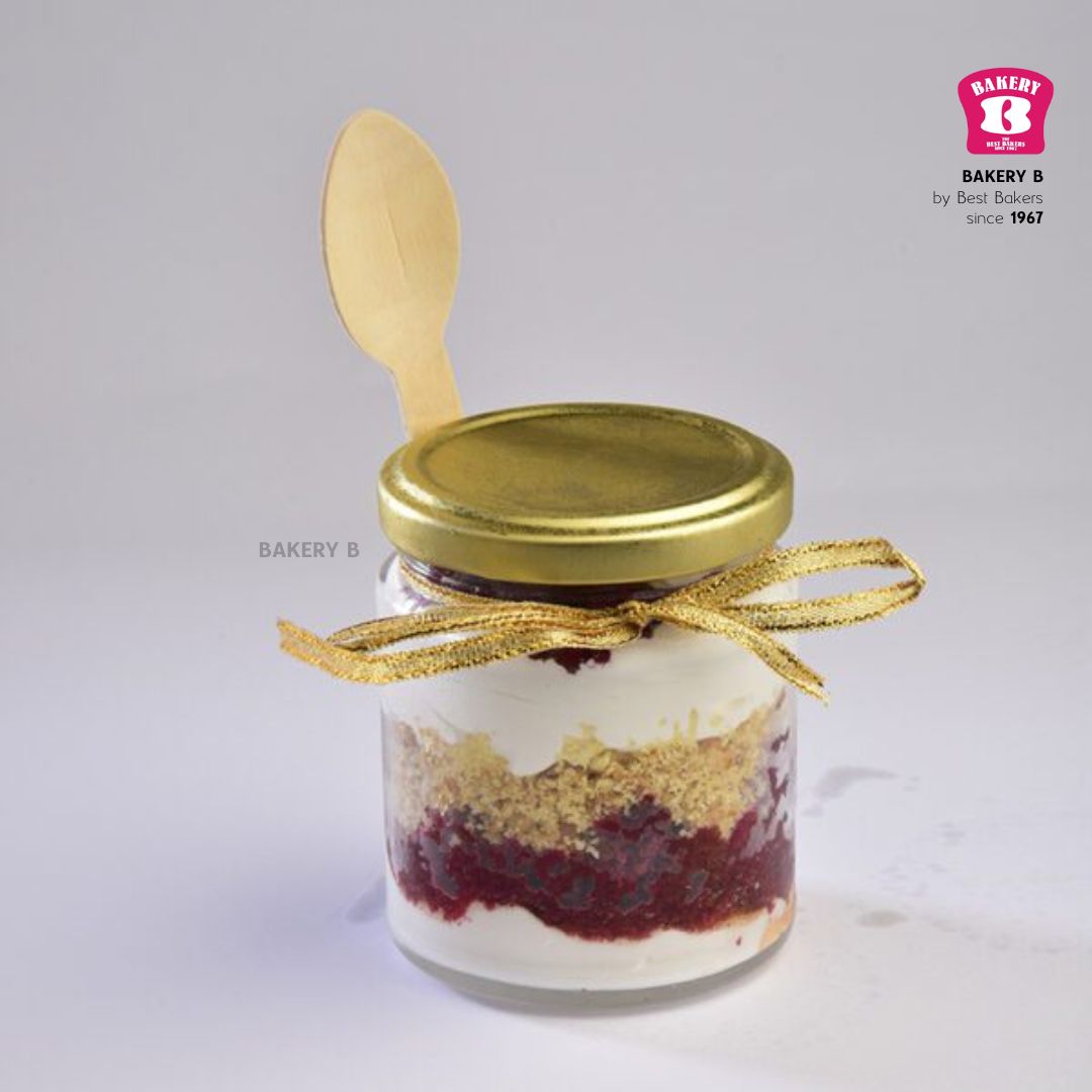 Indulge in the exquisite taste of our Red Velvet Jar Cake, featuring layers of moist red velvet cake and luscious cream cheese frosting.