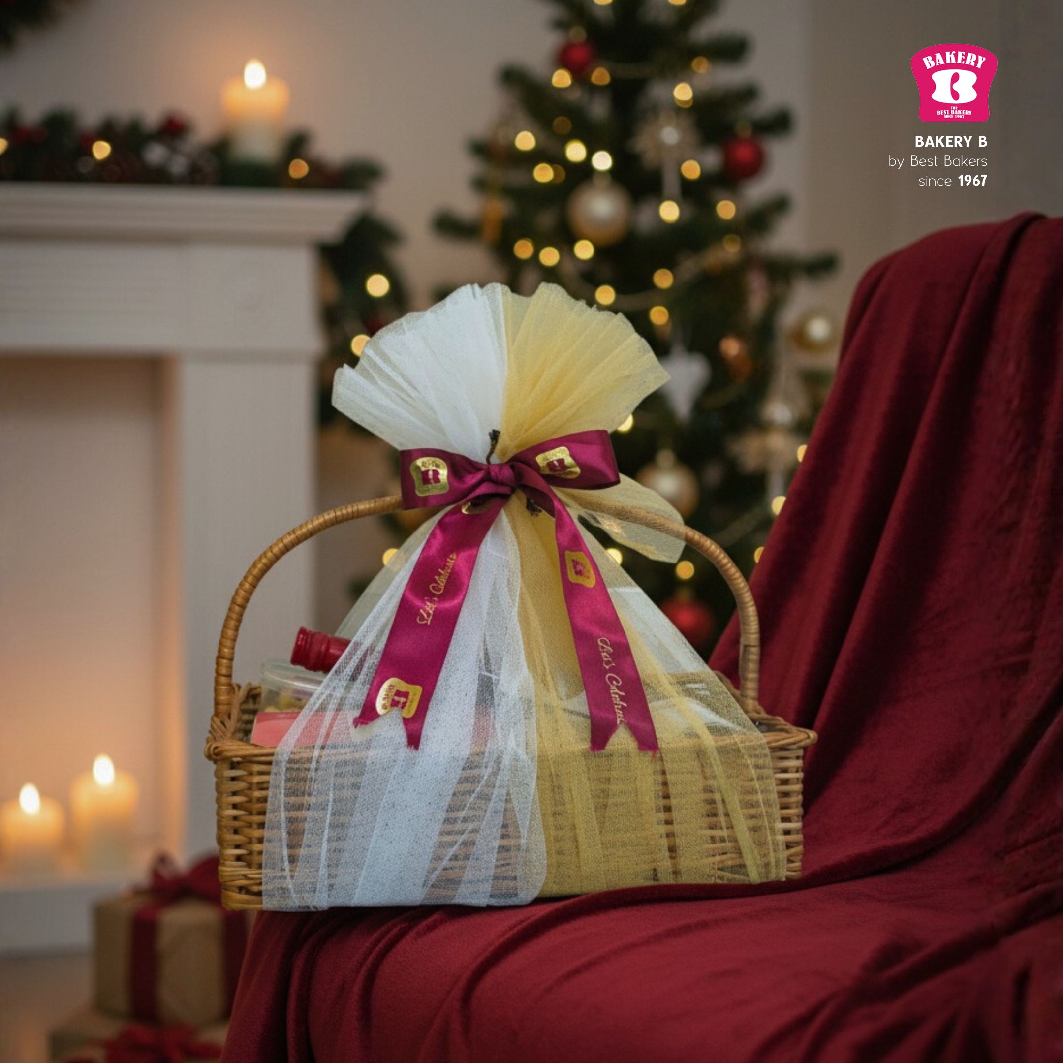 Ring in the festivities with the Jingle Bells Hamper, beautifully wrapped in festive fabric and packed with Christmas favourites. Enjoy our special Plum Cake, fine Wine, creamy Hazelnut Spread, crunchy Dry Fruit Mixture, traditional Chikki, and freshly baked Cookies.