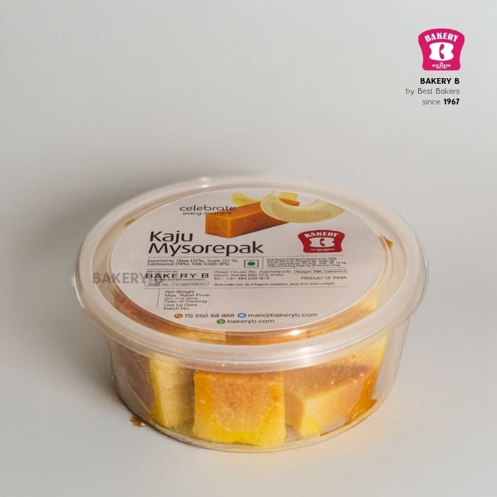 A rich, soft Mysorepak infused with the creamy goodness of cashew nuts, ghee, and milk powder for a luxurious twist on a traditional favorite.
