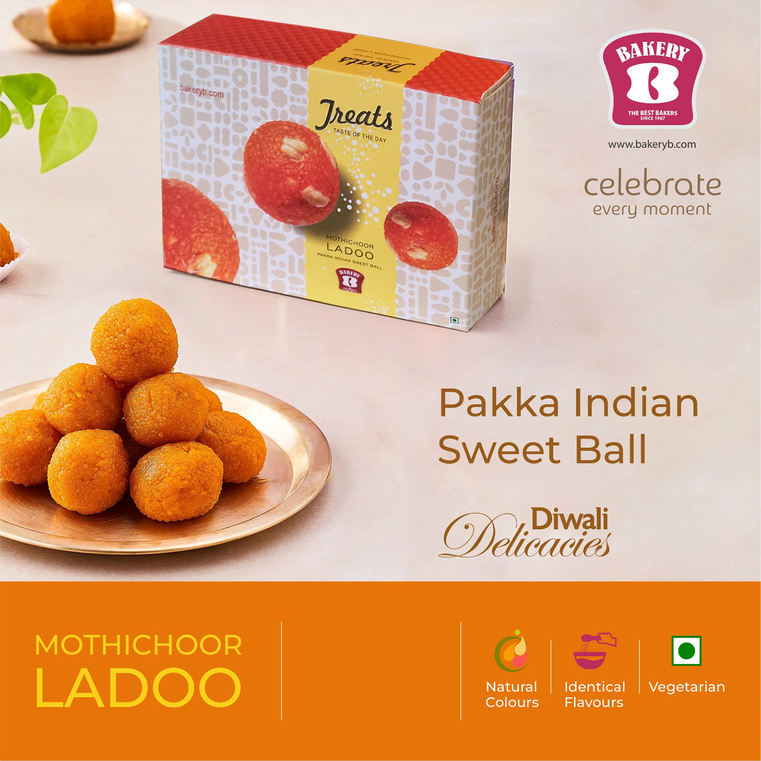 Savor the heavenly taste of our Mothichoor Ladoo Box, featuring delectable boondi pearls coated in sugar syrup, adorned with saffron strands and crushed nuts.