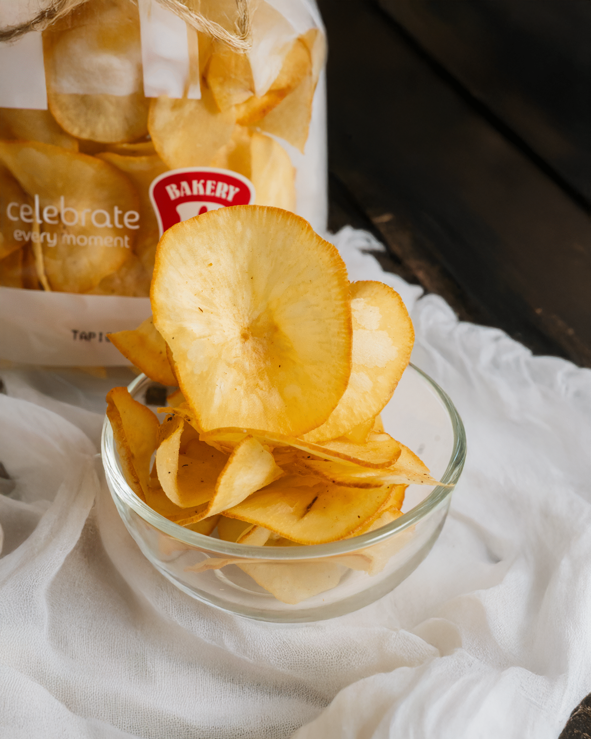 Savor the crunch of our Tapioca Chips. Made from fresh tapioca roots and seasoned with spices, these crispy chips are the perfect snack for any occasion.